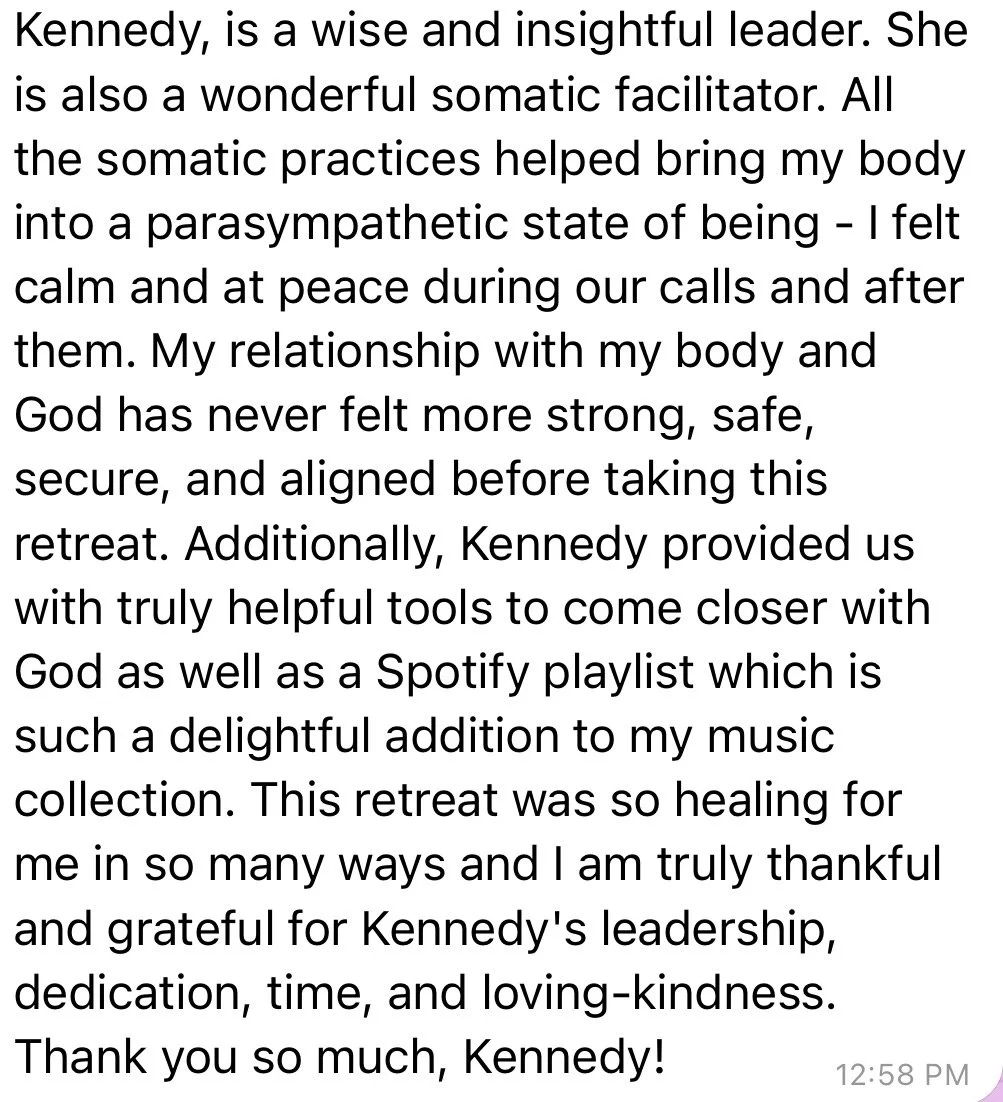 what if you could be fully present with your body and God without feeling like you have to get it “right”? together, we’ll release inherited rules, old stories, and patterns that keep you performing, overdoing, or outsourcing your spiritual power… moving into trust, presence, and intimacy as God’s Beloved.